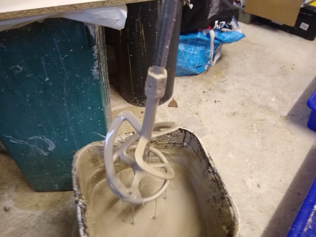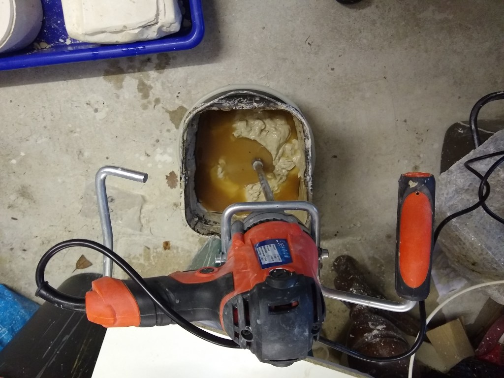 Builders plaster mixing tool used for stirring the clay to make slip.