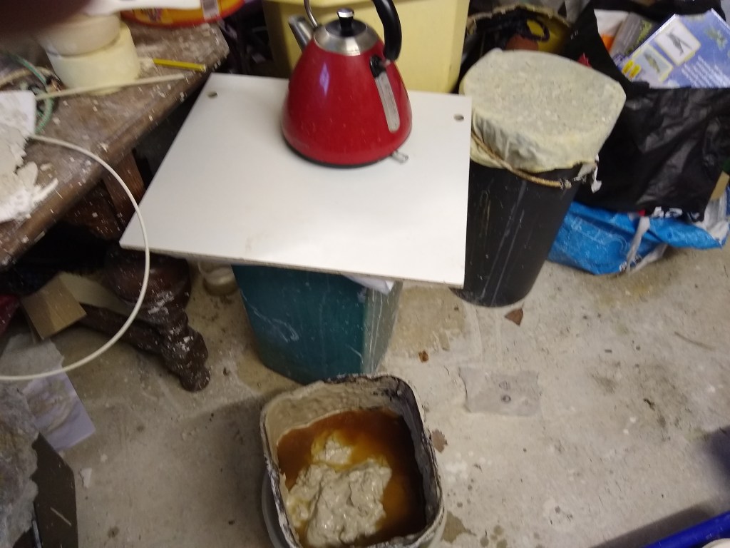 Garage temperature is currently at 8 C, hence the moulds brought in to warm up!